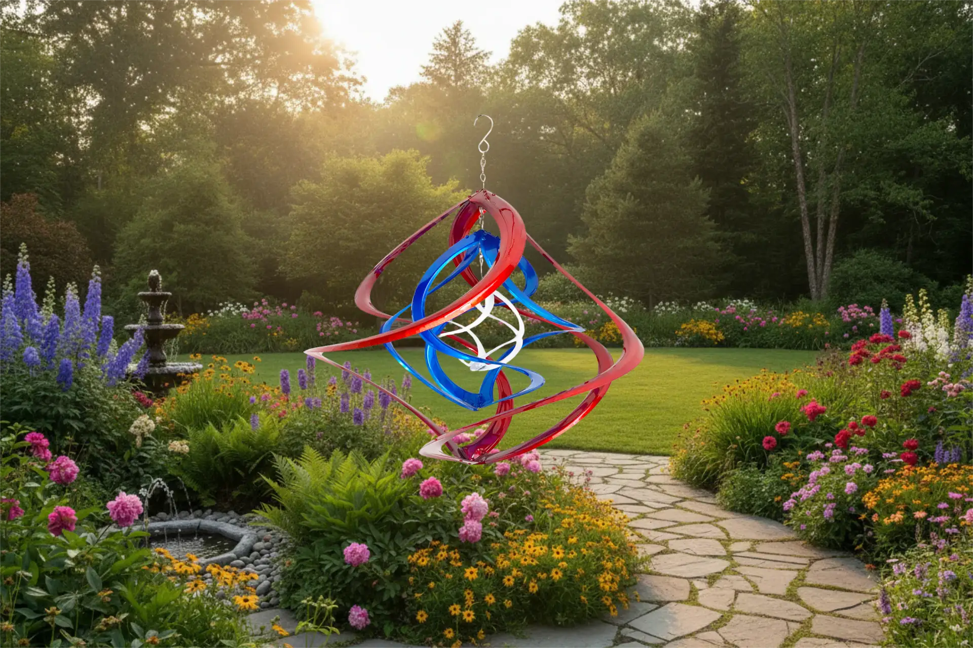 Red, White & Blue Triple Cosmix Garden Spinner – 20″