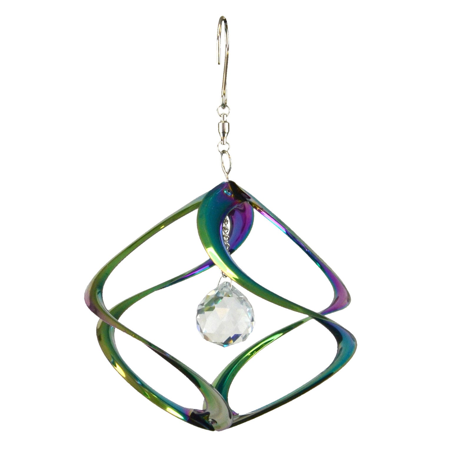 – Crafted from eye-catching, iridescent mirrored stainless steel and a glass crystal accent